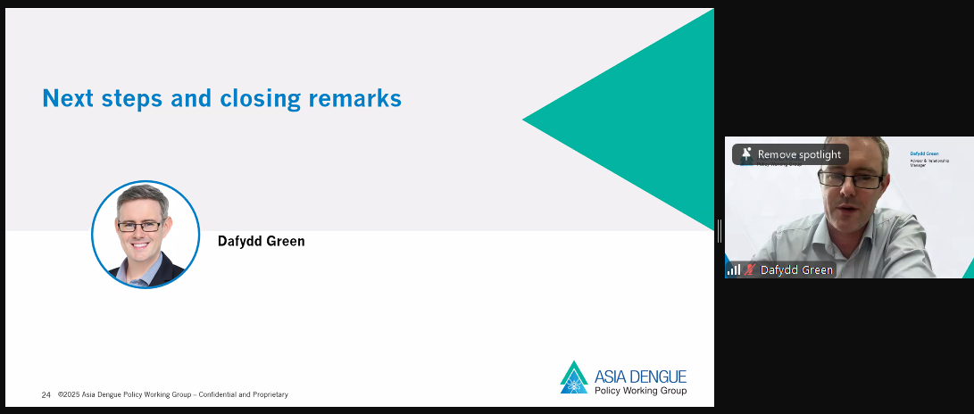 Rie Tai, Manager of the ADPWG, then shared more details about the ADPWG’s dengue policy landscaping and mapping exercise, presented key regional, national and country-level recommendations to pave the way to achieve WHO’s goal of Zero Dengue Deaths by 2030.